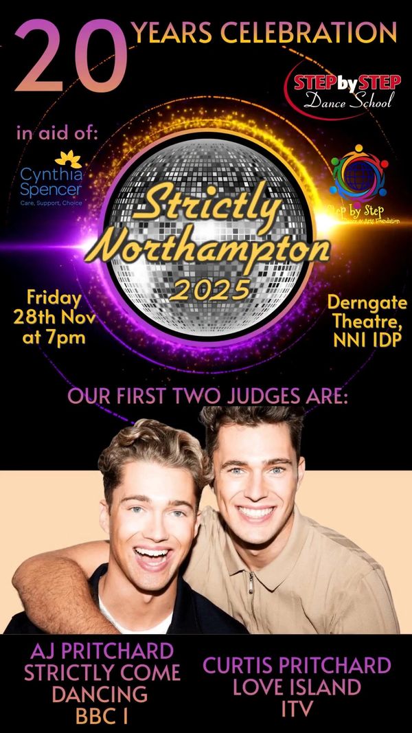 Join us for the 14th Anniversary of Strictly Northampton run by Step by Step Dance School! Now in its 14th year, this competition will see local superstars take to the stage in this Ballroom and Latin extravaganza. Leading up to this, contestants will be paired up with students from Step by Step Dance School.